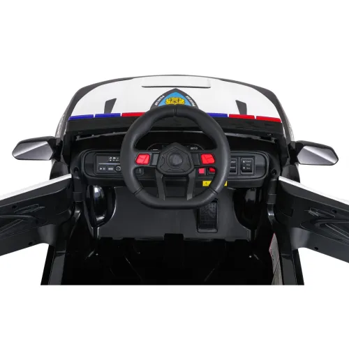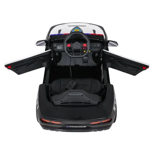 Салон автомобіля також порадує юних водіїв – зручне сидіння з екошкіри оснащене ременями безпеки для забезпечення безпеки дитини під час поїздки. Двері відкриваються, що полегшує посадку та висадку та додає реалістичності транспортному засобу. Автомобіль оснащений вдосконаленою аудіопанеллю з входами MP3 та USB, а також Bluetooth, що дозволяє відтворювати улюблену музику.