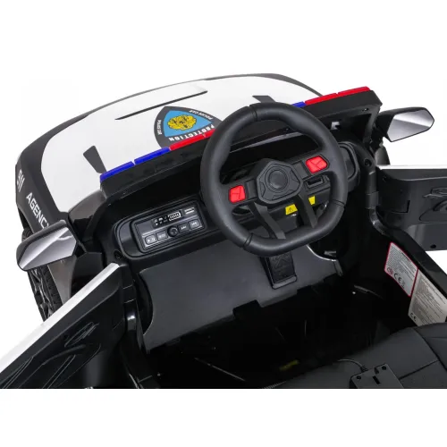 Дитячий електромобіль RAMIZ Police 911 Agency - представляємо унікальну поліцейську машинку 911 Agency на акумуляторах – транспортний засіб, який здійснить мрії кожного маленького правоохоронця! Ця дитяча електромобілька вражає як своїм сучасним дизайном, так і функціональністю, натхненною справжніми поліцейськими автомобілями.