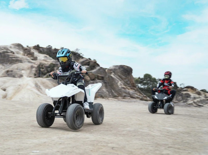 Квадроцикл оснащений міцними затискачами керма, які забезпечують надійний захват і стабільне керування. Великі 13-дюймові надувні гумові шини гарантують відмінне зчеплення і рівновагу навіть на нерівній поверхні. Завдяки мобільному додатку батьки можуть активувати режим «Kids», що обмежує максимальну швидкість до 5 км/год, що забезпечує спокій і безпеку під час перших поїздок.