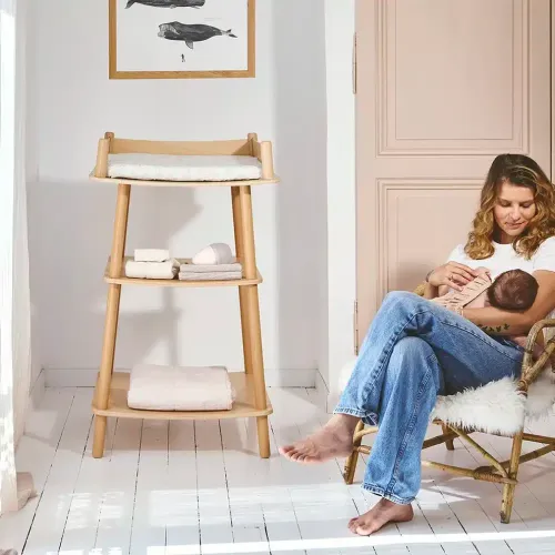 Пеленальний столик Charlie Crane Pago - пеленальний столик PAGO з букового дерева є одночасно красивим і практичним, з двома злегка вигнутими полицями для зберігання речей. Його витончений, сучасний дизайн гармонійно вписується в будь-яку спальню або ванну кімнату. Міцний і надійний, він може використовуватися від народження до 15 кг. Підняті бортики забезпечують безпеку під час пеленання. Пеленальний матрацик, виготовлений у Франції, наповнений переробленою піною ORBIS, що забезпечує м'якість і комфорт.