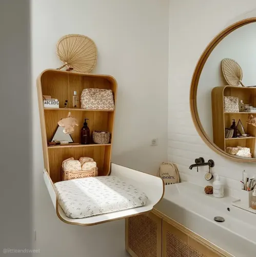 Розкладний дерев'яний настінний пеленальний стіл Charlie Crane Noga - полюбіть елегантність і дизайн настінного пеленального столика NOGA. Він дозволить вам заощадити простір у дитячій кімнаті або ванній, оскільки після використання його можна притиснути до стіни. Завдяки місткому ящику для зберігання речей і зручній пеленальній поверхні цей пеленальний столик стане ідеальним помічником для оптимізації простору для пеленання. Цей практичний настінний пеленальний столик можна закріпити на потрібній висоті, щоб забезпечити необхідний комфорт під час пеленання дитини.