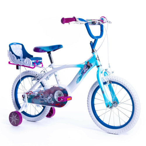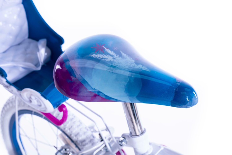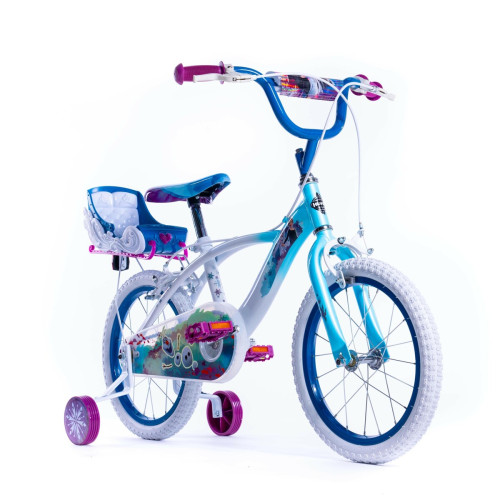 Дитячий велосипед Huffy Disney FROZEN 16" - велосипед для дівчаток 5–7 років з сидінням для ляльки. Зачарована пригода чекає! Велосипед Huffy Frozen 16" – ідеальний вибір для дівчаток віком 5–7 років (110–120 см), які люблять Країну Льоду. Синя металева рама з графікою Ельзи та її коня створює казкову атмосферу під час кожної поїздки. Велосипед має повний захист ланцюга, знімні бічні колеса та ручні гальма спереду і ззаду. Зручне сідло, м'які ручки та сидіння для ляльки, встановлене на кермі, роблять кожну поїздку ще більш особливою. Безпечний, зручний і повний деталей, які сподобаються дітям і батькам.