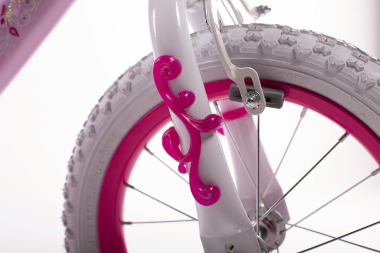 Дитячий велосипед Huffy Disney PRINCESS 14" - це казковий велосипед для дівчаток віком 4–6 років (100–110 см), які люблять світ Діснея. Рожева сталева рама, прикрашена графікою принцес і квітковим візерунком, створює чарівну атмосферу під час кожної поїздки. Знімні бічні колеса допомагають навчитися їздити, а ручні гальма спереду і ззаду забезпечують безпеку. М'які ручки і зручне сідло гарантують комфорт, а прикраса у формі серця на кермі додає чарівності. Ідеальний перший велосипед для розвитку самостійності і радості від їзди.