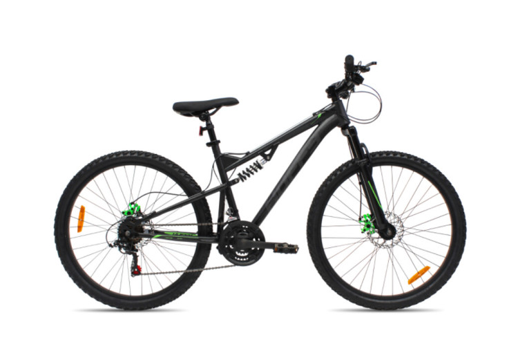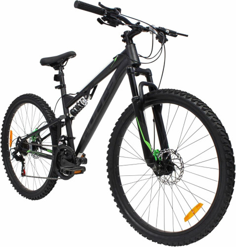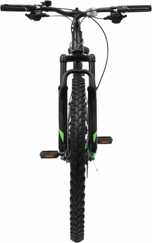 Дитячий велосипед Huffy MARKER 26" - це надійний гірський велосипед для дорослих і підлітків (зріст від 153 см), створений для подолання перешкод на місцевості. Сталева рама (43 см), 26-дюймові колеса і повна амортизація – 170-мм вилка спереду і 160-мм пружина ззаду – забезпечують комфорт і контроль на складній місцевості. Велосипед має 21 передачу Shimano TZ500 з манеткою TS39 та подвійні дискові гальма (160 мм спереду, 140 мм ззаду), які гарантують безпечне гальмування. Зручне сідло з швидкозатискачем та класичний чорний колір роблять його ідеальним вибором для щоденних поїздок та вихідних екскурсій.
